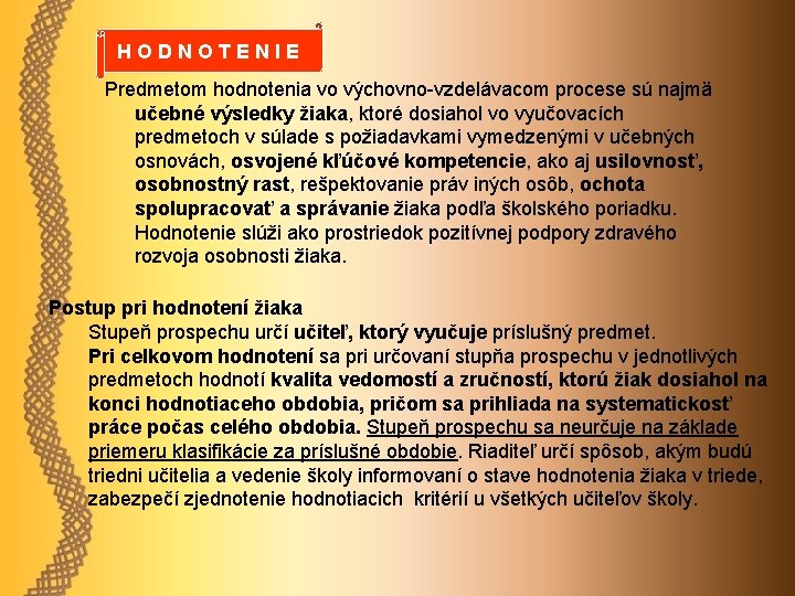 22/2011 na hodnotenie žiakov základnej školy zásady hodnotenia • má informatívnu, korekčnú a motivačnú funkciu • žiak sa v .